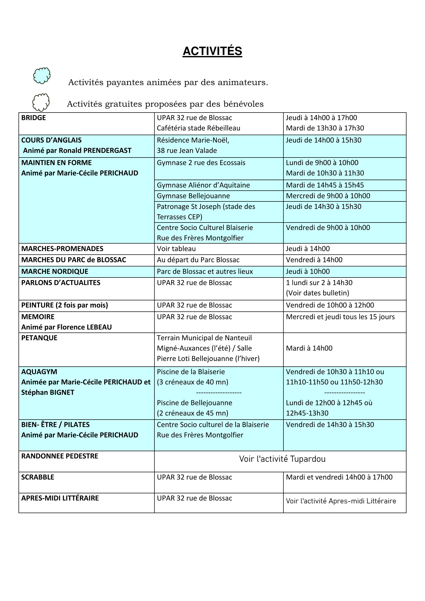 ACTIVITES